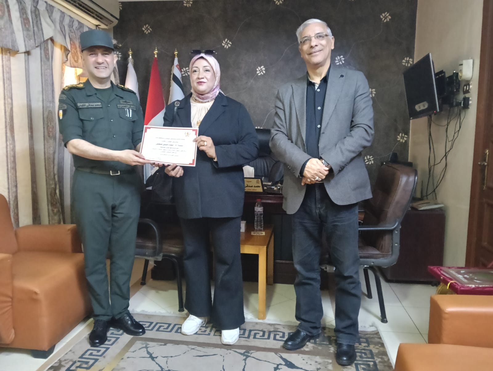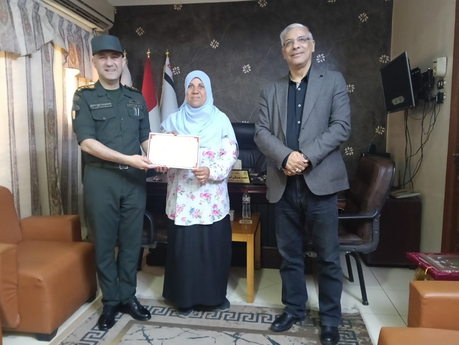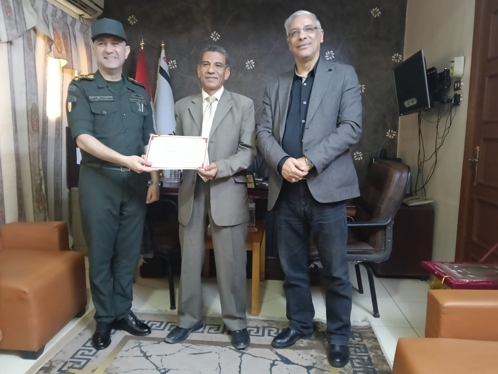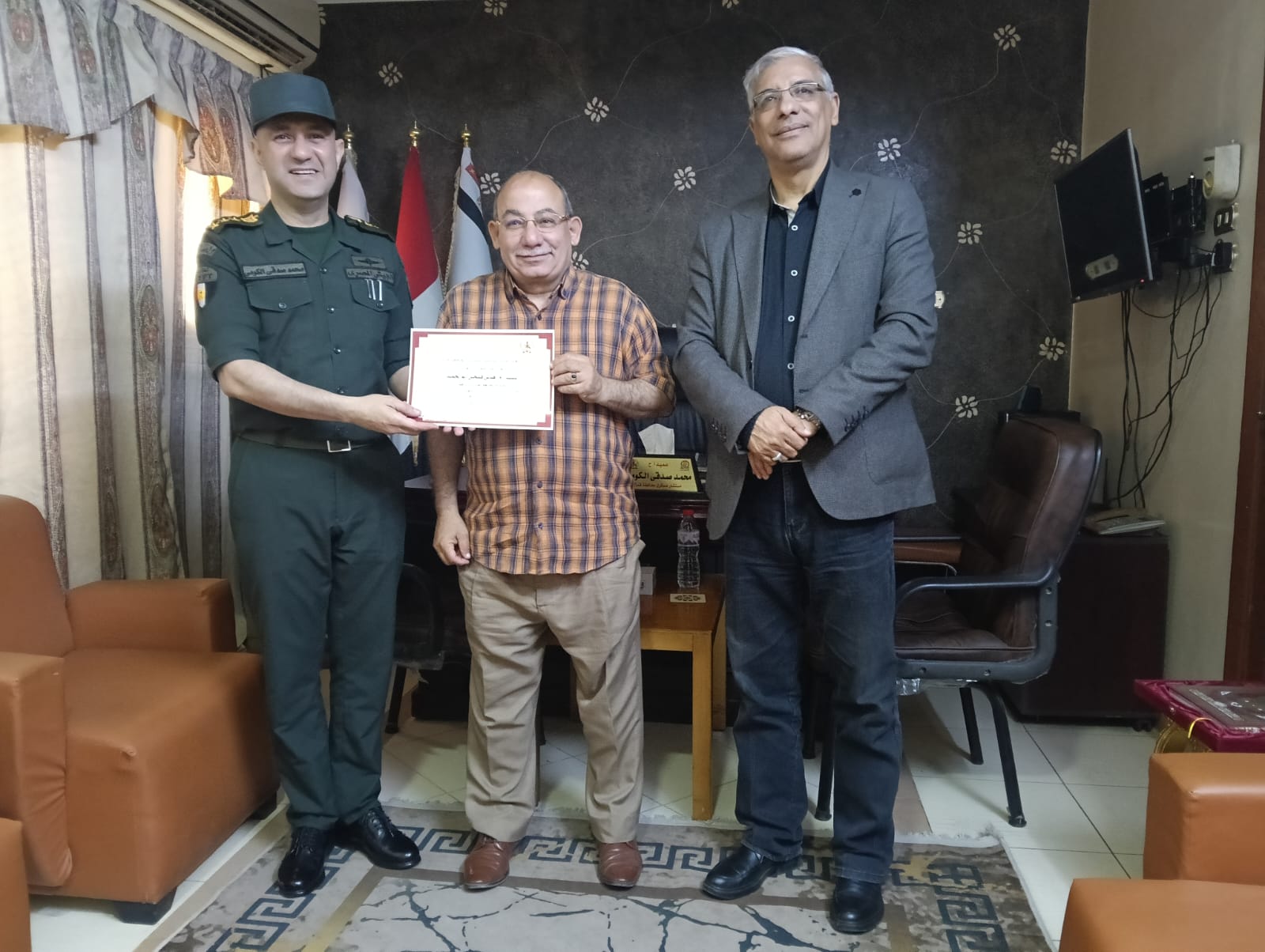 كرم العميد أركان حرب محمد صدقي الكومي، المستشار العسكري لمحافظة قنا، بمكتبه اليوم، طارق سعد الدين، وكيل وزارة التربية والتعليم بقنا، ومديري مدارس التأسيس العسكري، وذلك تقديرًا لجهودهم في دعم التعاون المشترك بين المؤسسة العسكرية والمديرية التعليمية بالمحافظة. كما شمل التكريم الدكتور نجم أحمد علي، مدير عام التعليم الفني.