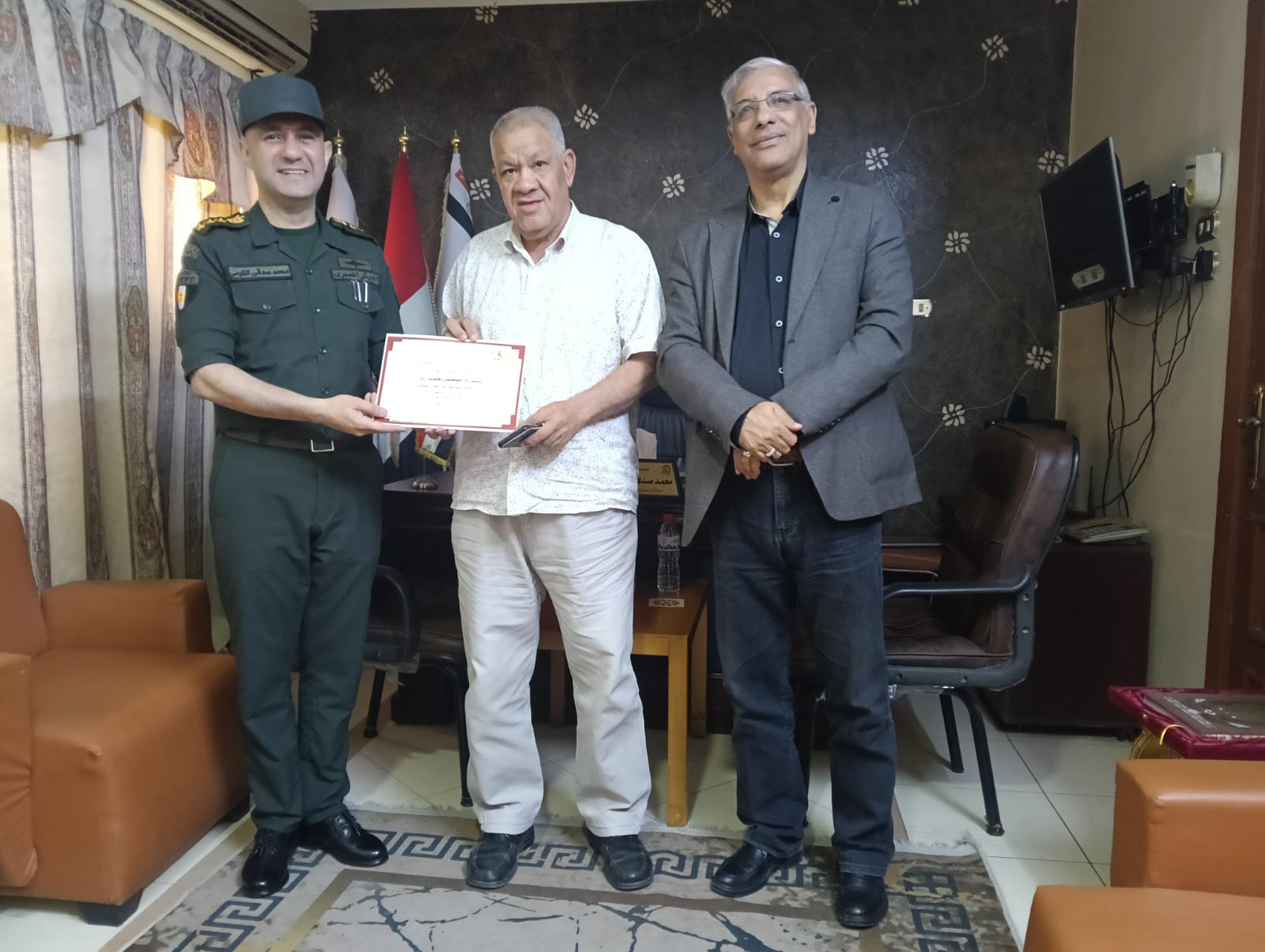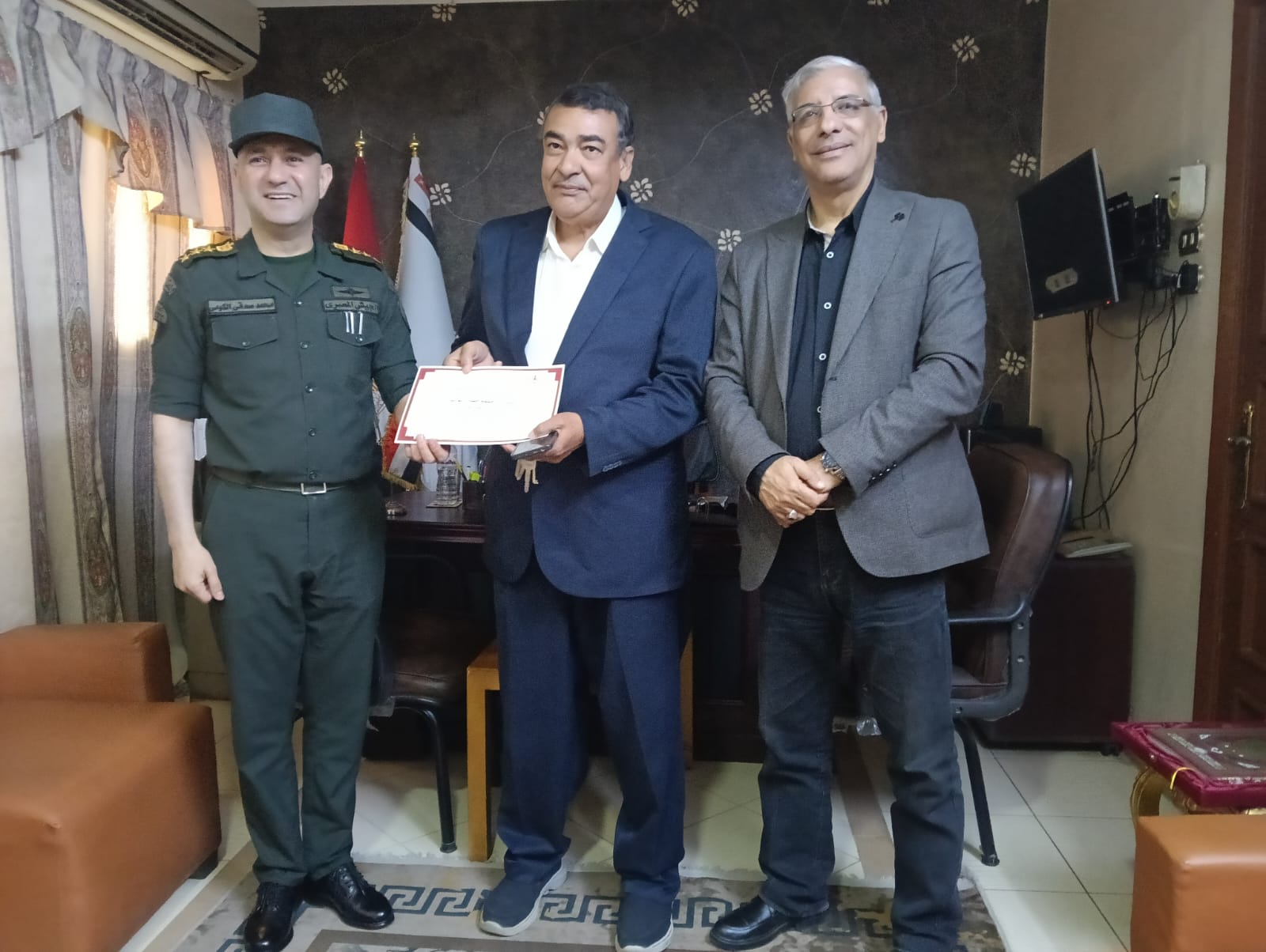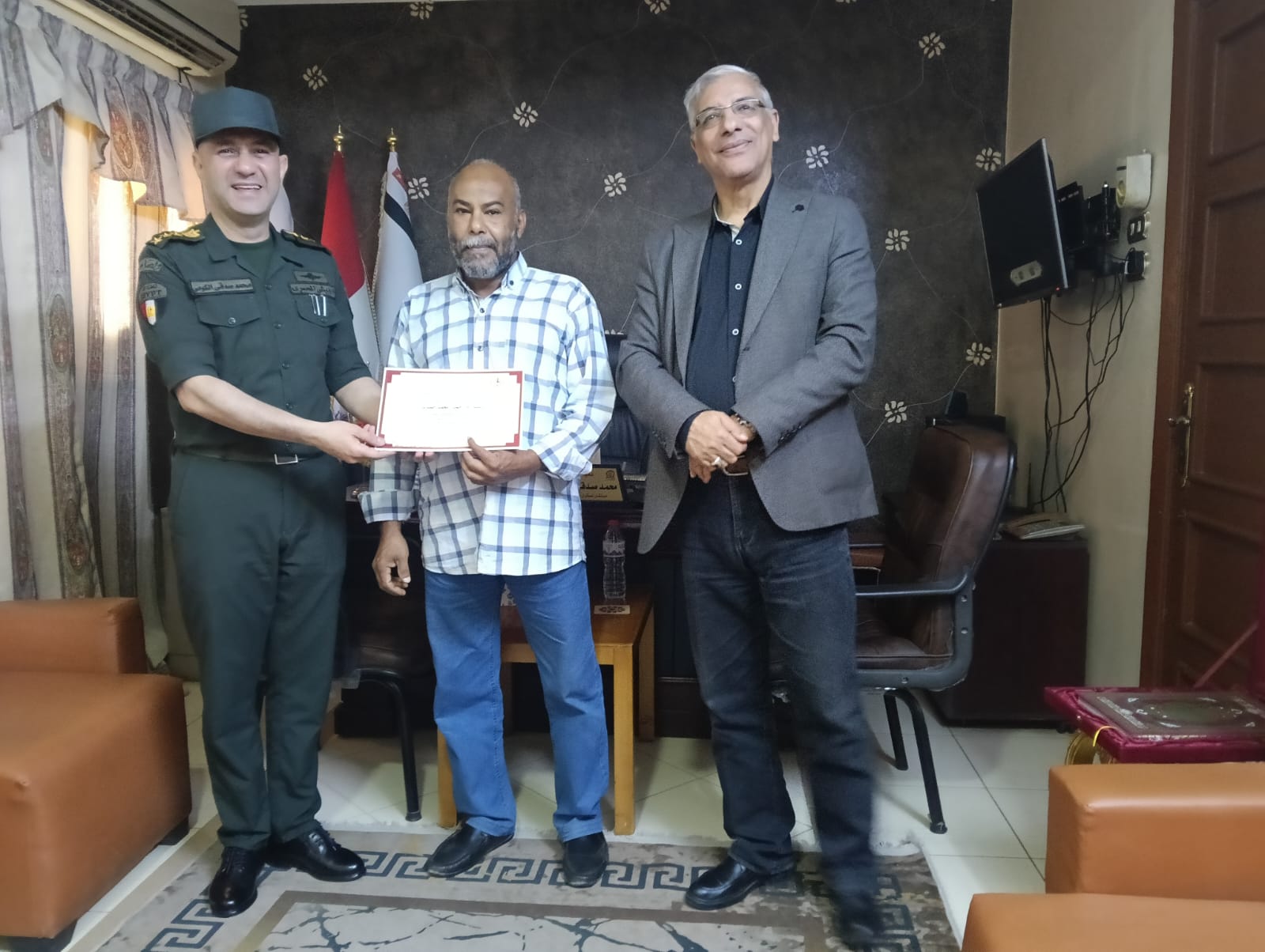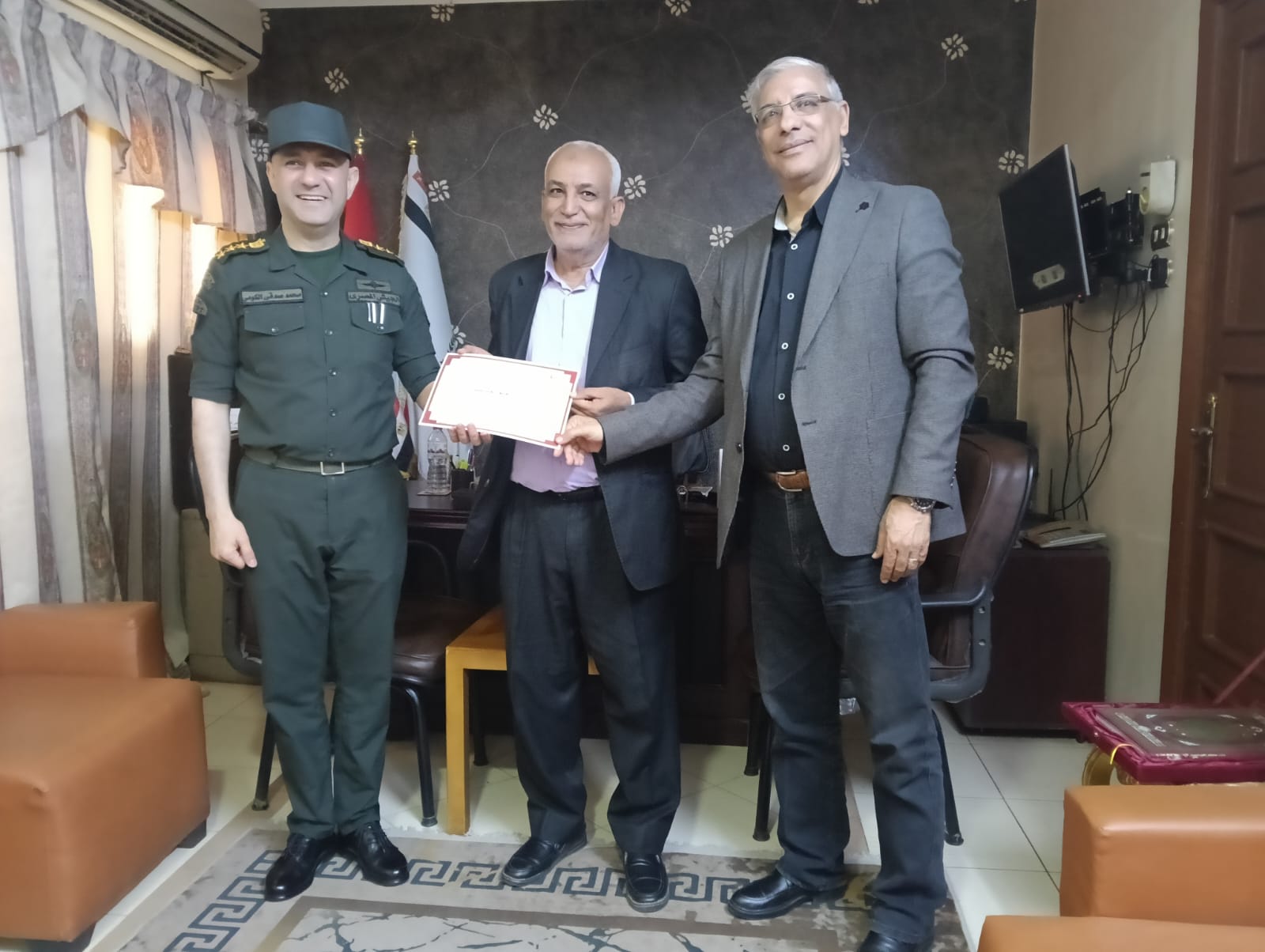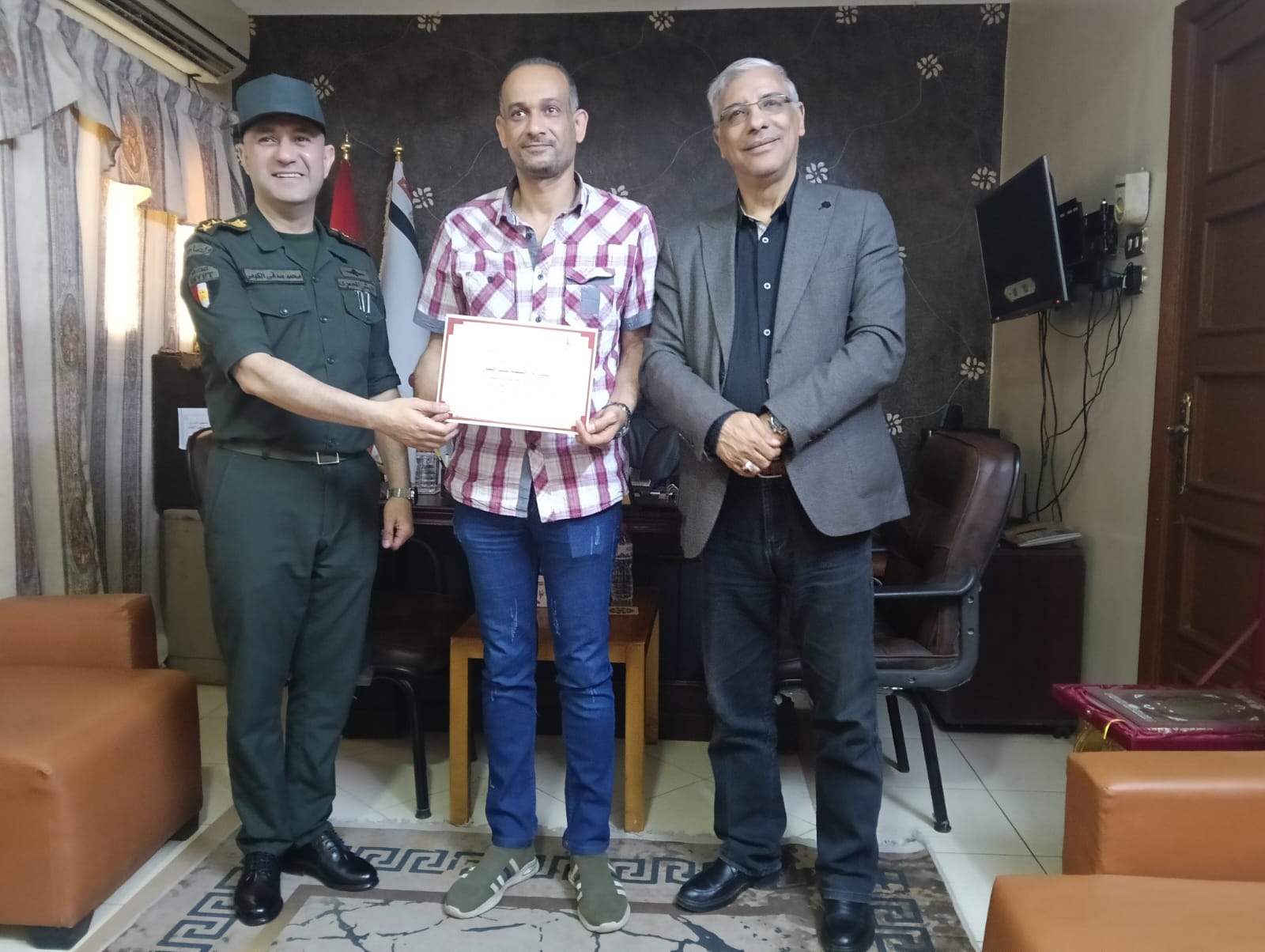 كرم العميد أركان حرب محمد صدقي الكومي، المستشار العسكري لمحافظة قنا، بمكتبه اليوم، طارق سعد الدين، وكيل وزارة التربية والتعليم بقنا، ومديري مدارس التأسيس العسكري، وذلك تقديرًا لجهودهم في دعم التعاون المشترك بين المؤسسة العسكرية والمديرية التعليمية بالمحافظة. كما شمل التكريم الدكتور نجم أحمد علي، مدير عام التعليم الفني.