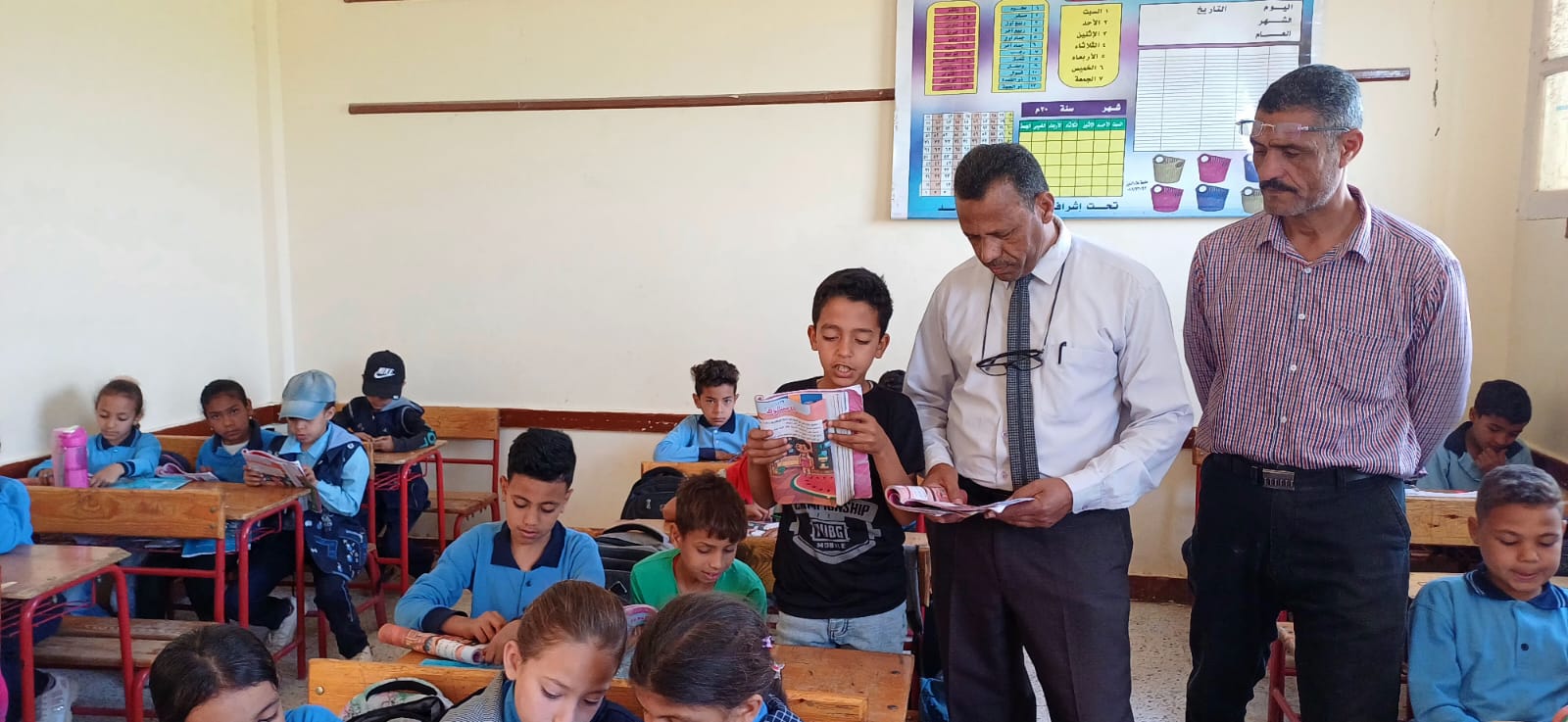 ووجّه عددًا من الأسئلة للتلاميذ لقياس مدى استيعابهم، مشيدًا بمستواهم وتفاعلهم داخل الحصة، ومؤكدًا أهمية الاهتمام بالمهارات الأساسية في القراءة والكتابة، إلى جانب تفعيل الأنشطة الصفية وتوظيف الوسائل التعليمية الحديثة بما يسهم في رفع التحصيل الدراسي وتحسين نواتج التعلم.