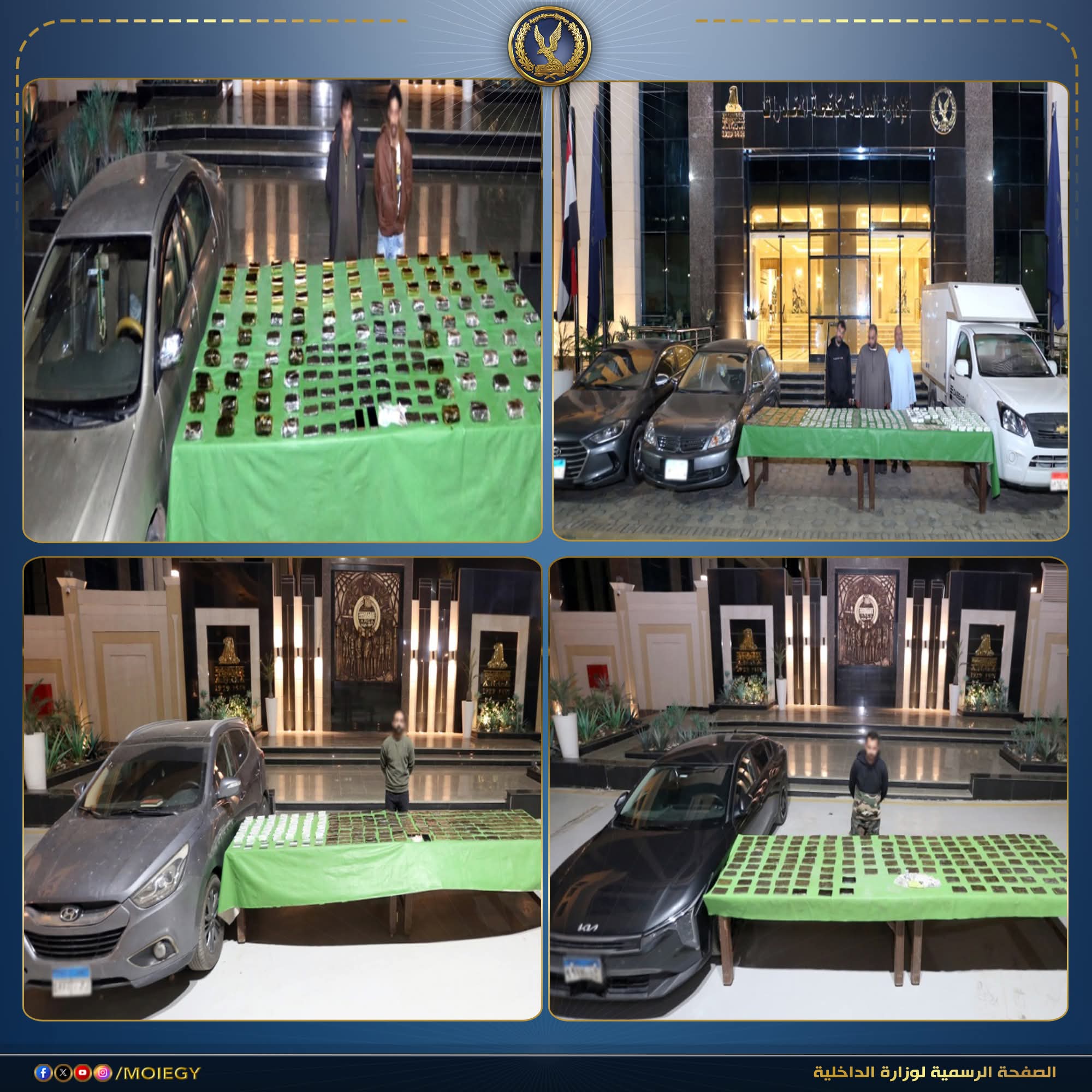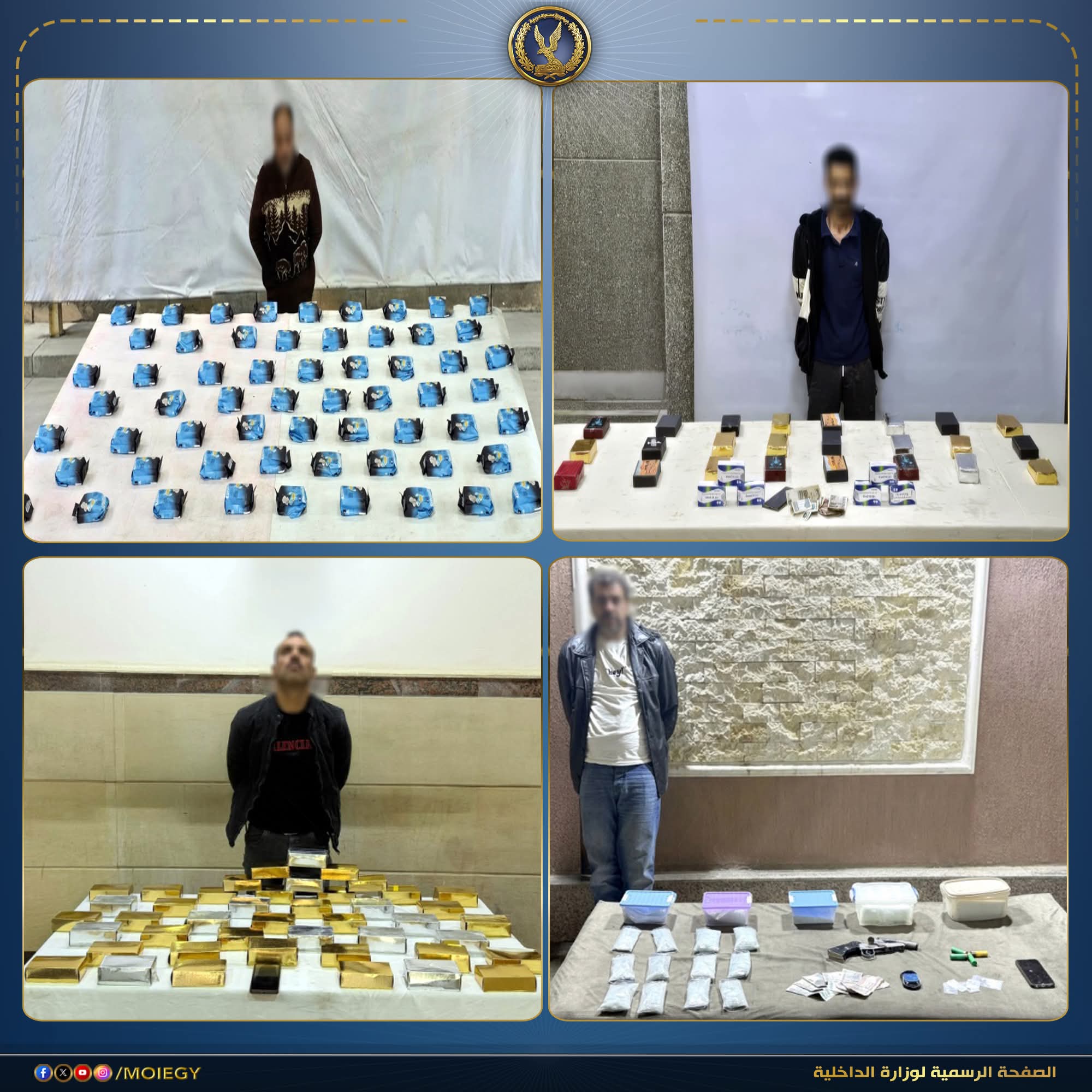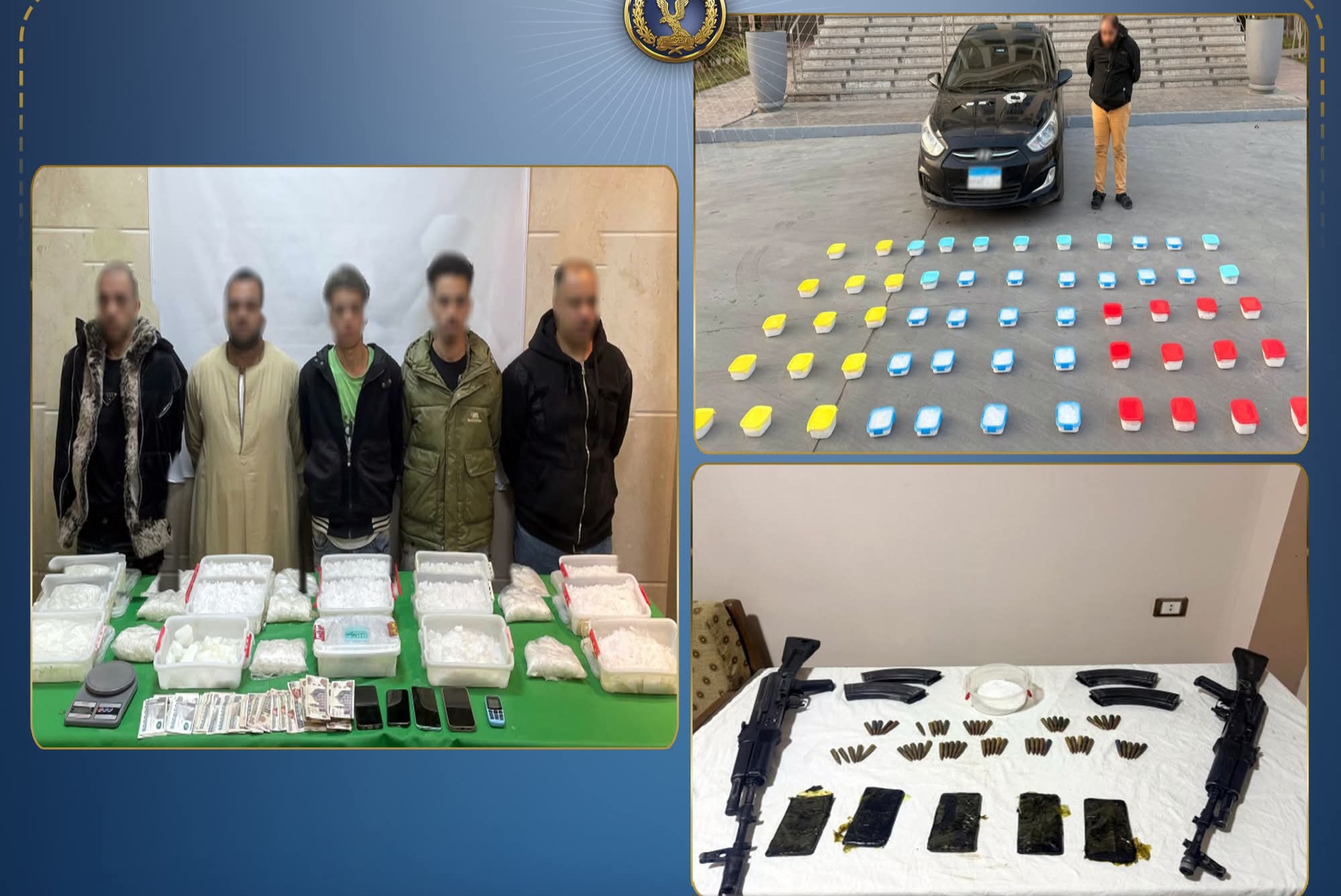 في إطار مواصلة وزارة الداخلية توجيه الضربات الاستباقية للبؤر الإجرامية من جالبي ومتجري المواد المخدرة وحائزي الأسلحة النارية غير المرخصة، أكدت معلومات وتحريات قطاعي الأمن العام ومكافحة المخدرات والأسلحة والذخائر غير المرخصة، بالتنسيق مع مديرية أمن القاهرة وأجهزة الوزارة المعنية، قيام بؤر إجرامية بنطاق عدد من المحافظات، تضم عناصر جنائية شديدة الخطورة، بجلب كميات من المواد المخدرة تمهيدًا للاتجار بها، وحيازة أسلحة نارية غير مرخصة.