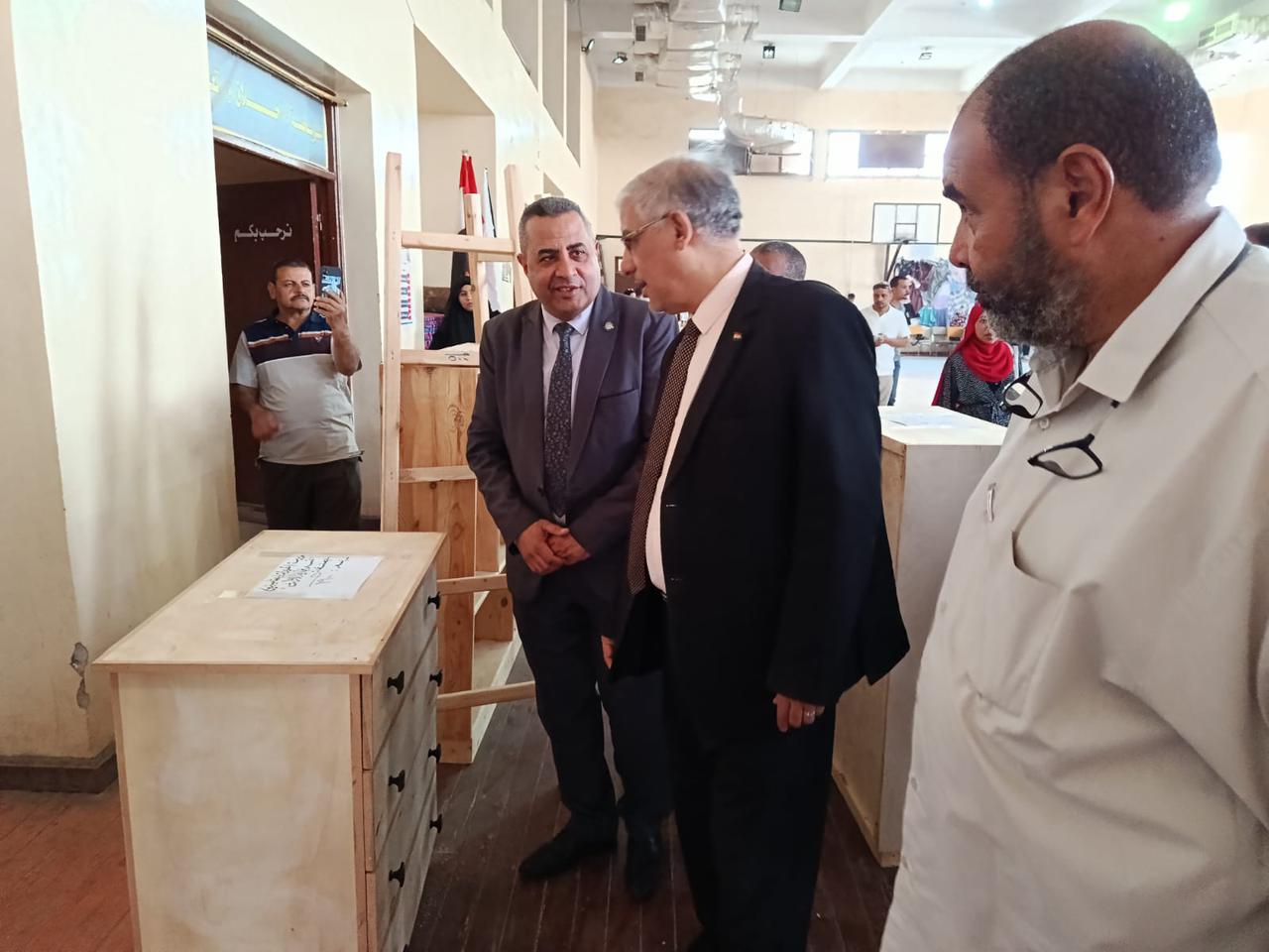 وخلال جولته داخل أجنحة المعرض، تفقد مدير المديرية المعروضات التي شملت منتجات متنوعة لطلاب المدارس الفنية، من بينها الصناعات الخشبية واليدوية والتراثية، والمنتجات الغذائية والزراعية مثل العسل ومنتجات الألبان والمخبوزات والمخللات، فضلًا عن مشغولات الكروشيه والخزف والإكسسوارات والمصنوعات الجلدية.